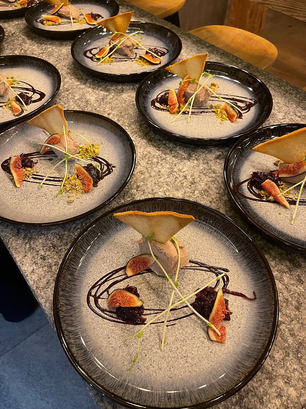 Homemade pâté, crushed pistachio, red onion marmalade, chocolate sauce, fresh fig and toasted brioche